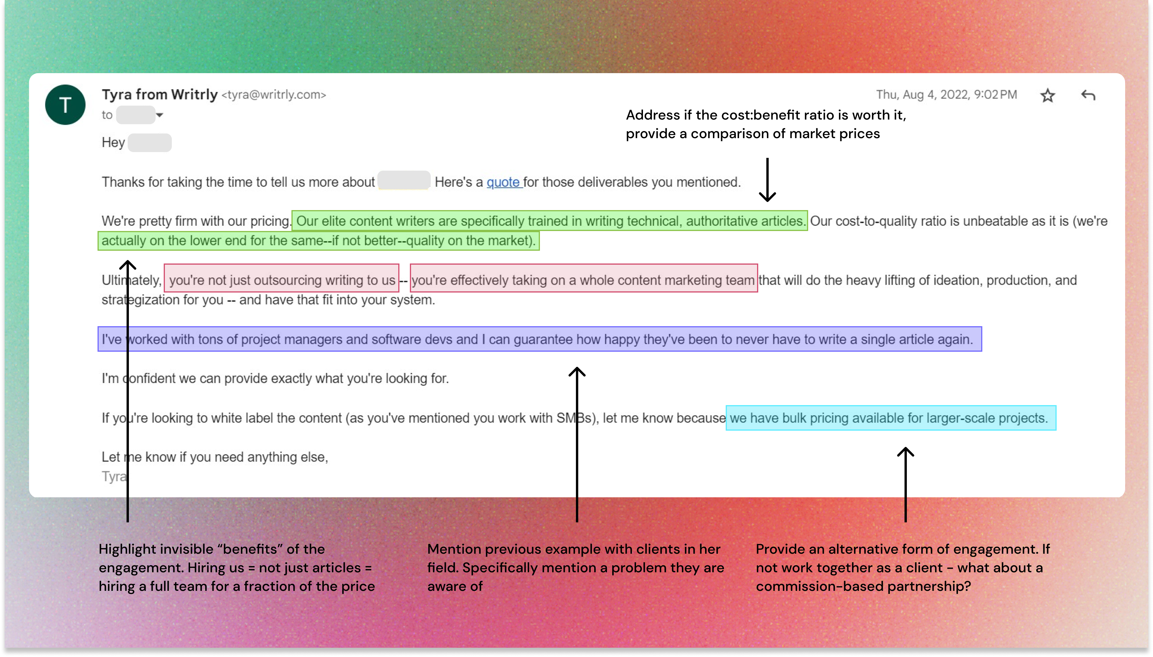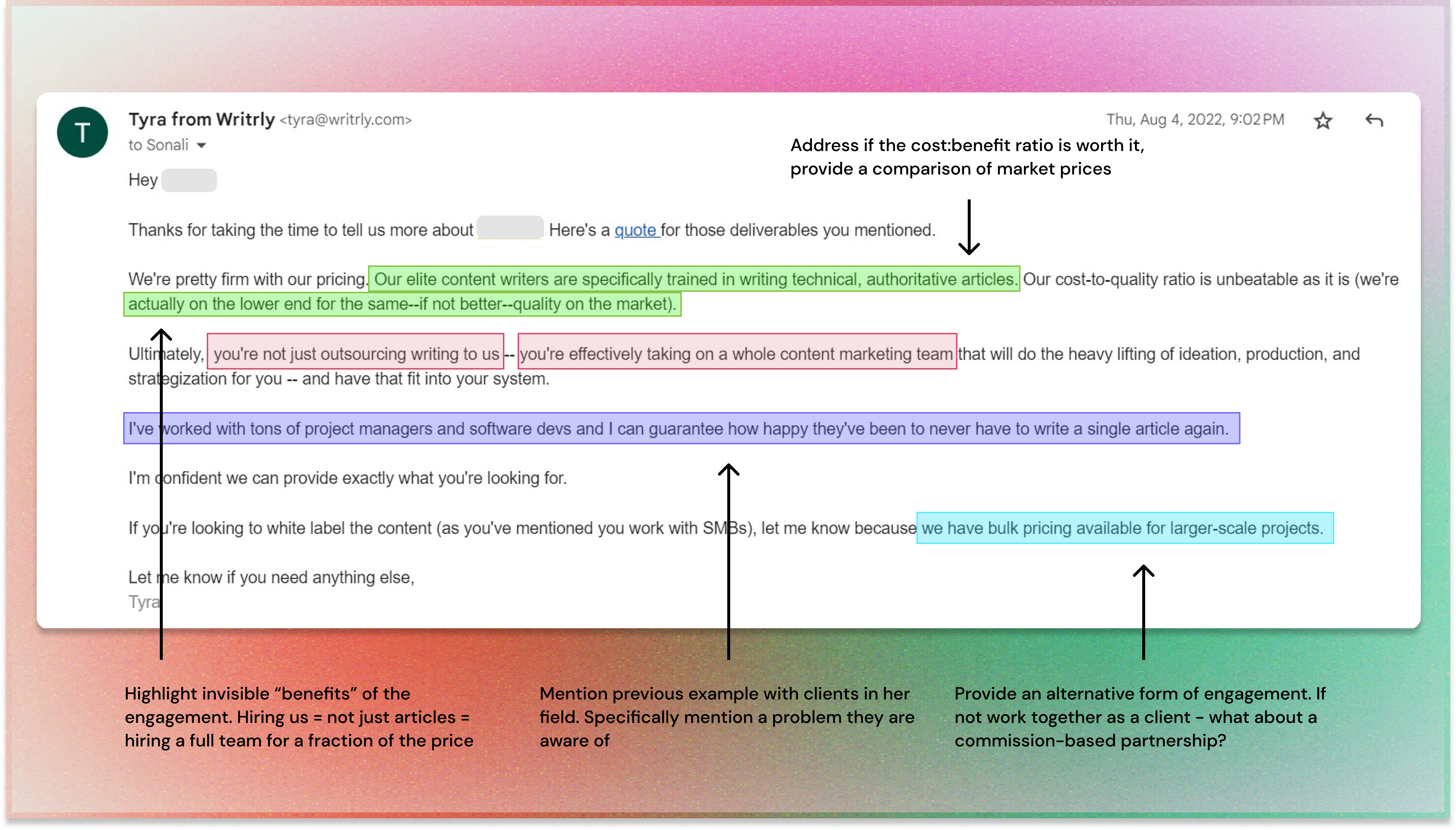 In that same email thread, the client got back to me and signed a $500/month subscription with us.