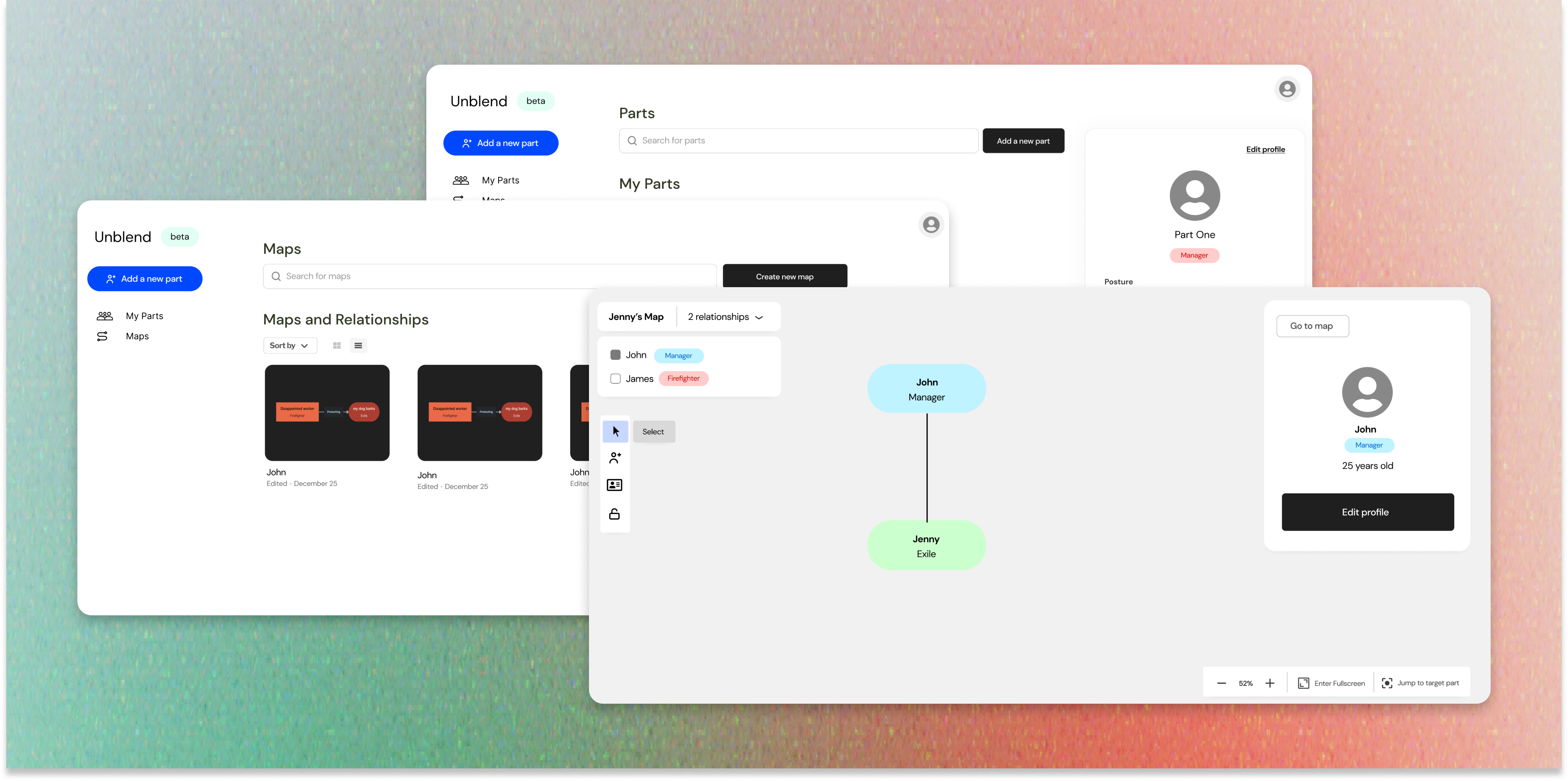 Unblend is a personal project. I’m in a team of 3, including a full-stack developer and an IFS practitioner/therapist who serves as our subject matter expert.