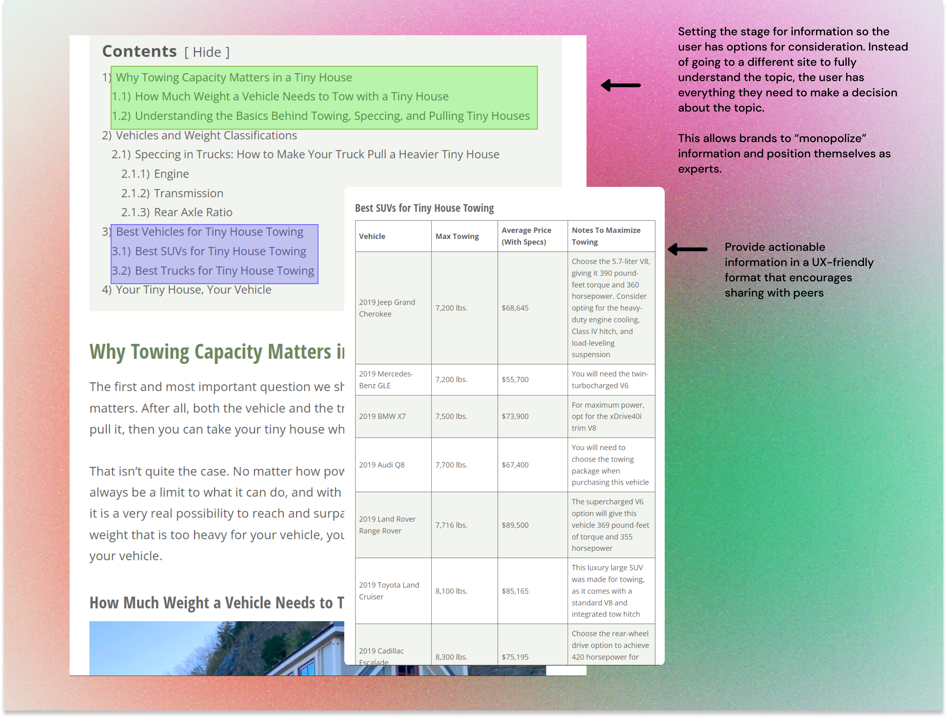 Our target audience were people who were interested in building their own tiny house - and wanted actionable, practical answers to their queries on construction, federal regulations, and more.